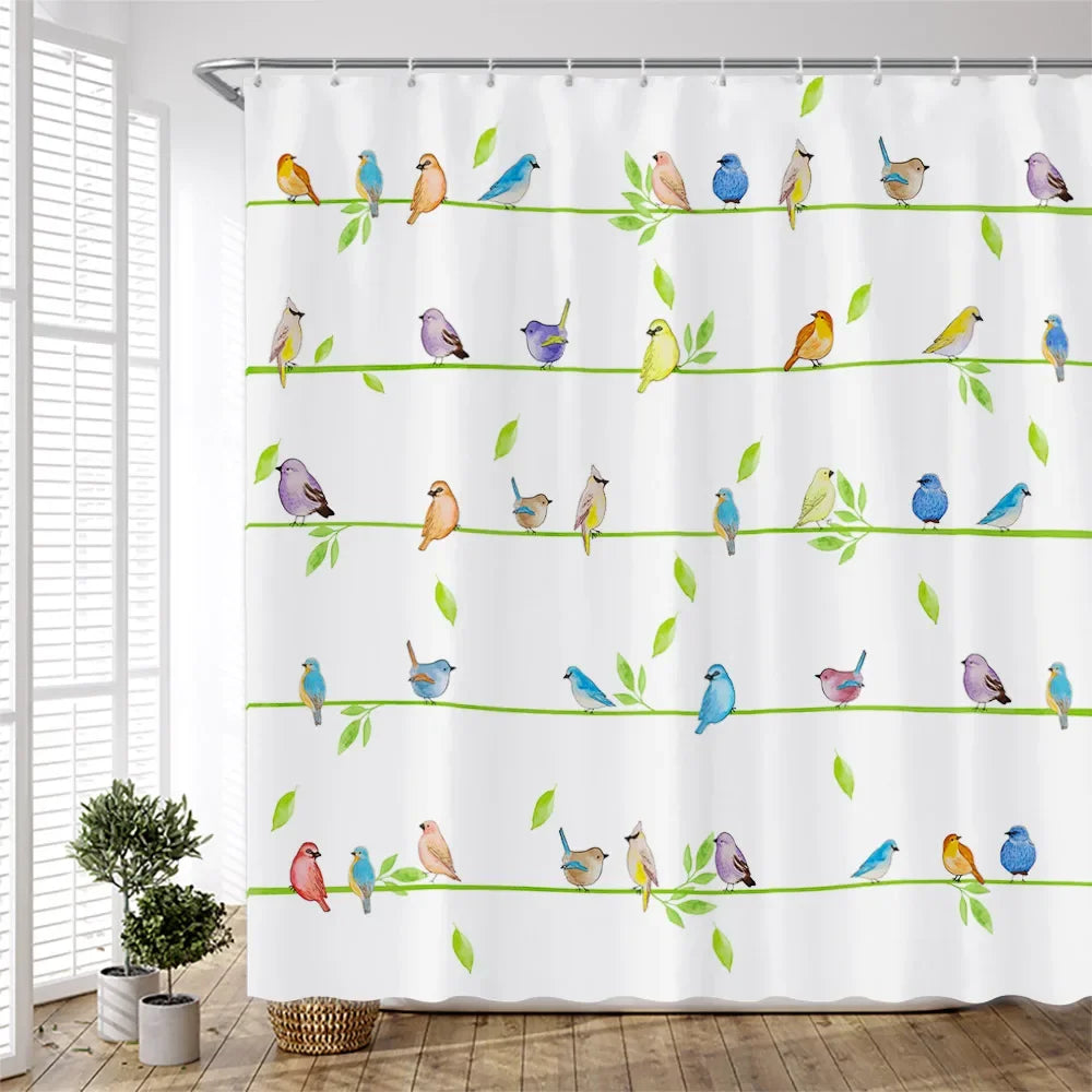 Watercolor Birds Shower Curtain – Chinese Art Style, 7 Colourways