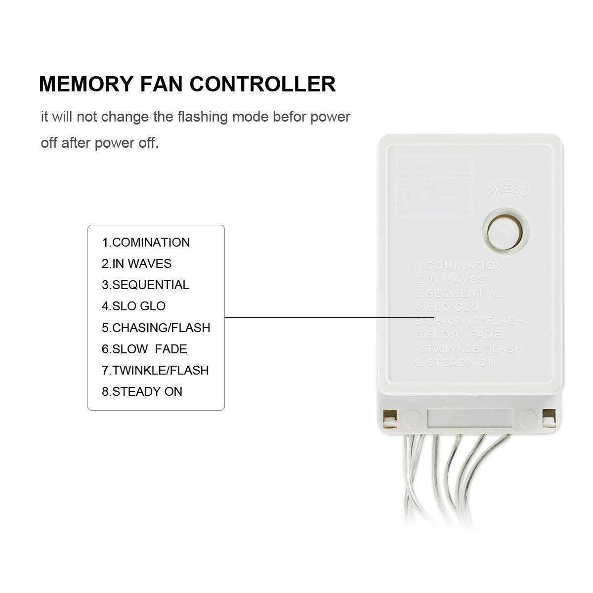 - Various Settings: Tailor the ambiance to your mood with settings such as Combination, In Waves, Sequential, Slow Glow, Chasing/Flash, Slow Fade, Twinkle/Flash, or Steady On.