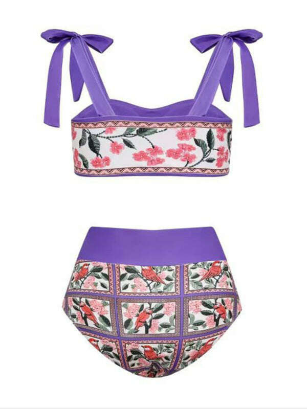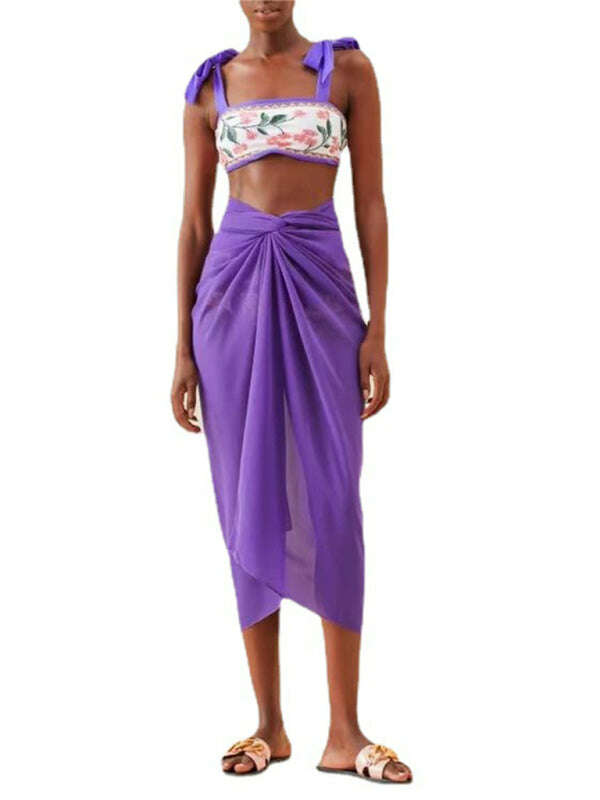 Women's new hip-hugging colorblock printed beach sun protection three-piece swimsuit