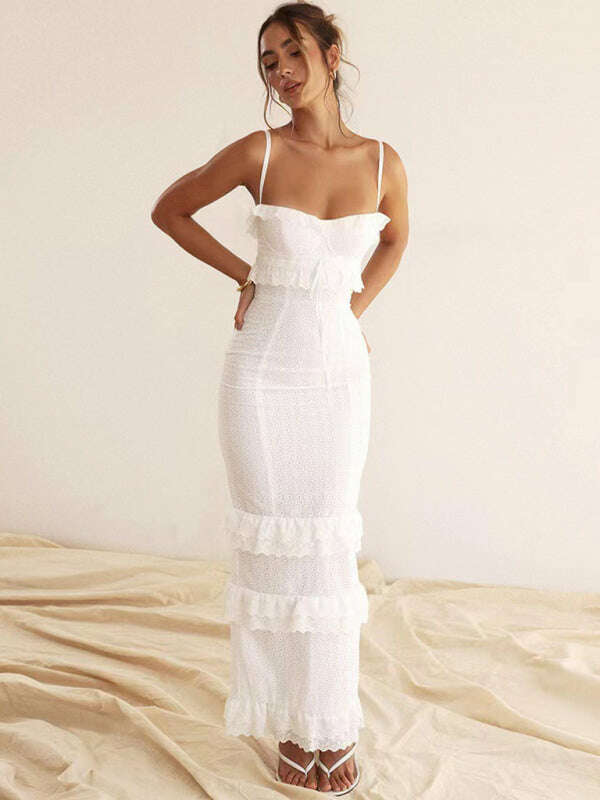 Women's new sexy dress white hook-and-loop suspender long skirt slim French dress