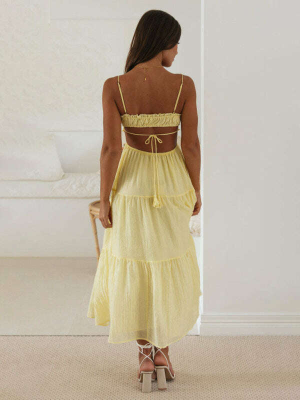 Women's new v-neck sleeveless solid color stitching long dress with large hem