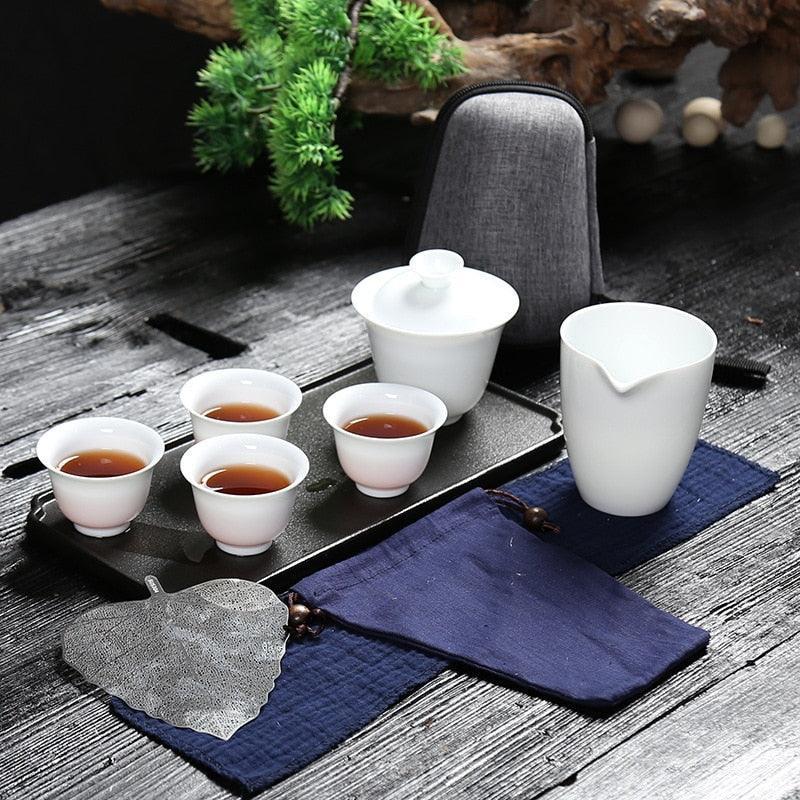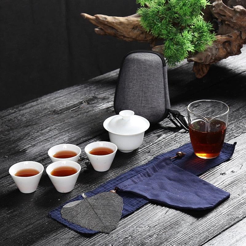 Zen Kung Fu Ceramic Gaiwan Tea Set with Portable Bag: Enhance Your Tea Ceremony Experience