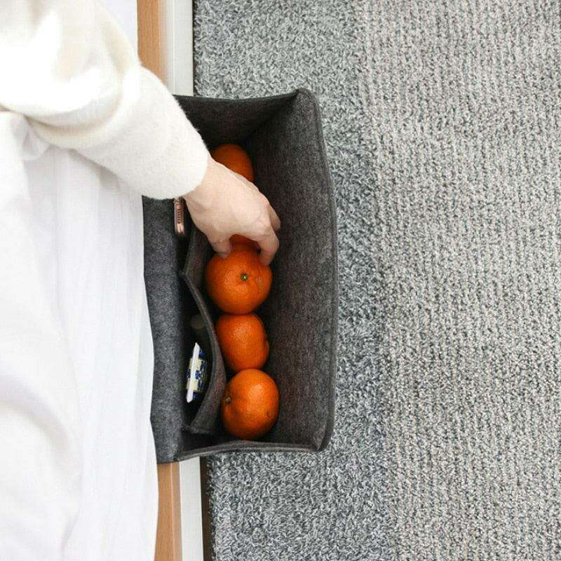 Transform your living space with the Felt Bedside Storage Caddy, the ultimate blend of functionality and style. This innovative storage solution is meticulously designed to keep your essentials within arm's reach, ensuring that your remote control, phone, and glasses are always conveniently organized.