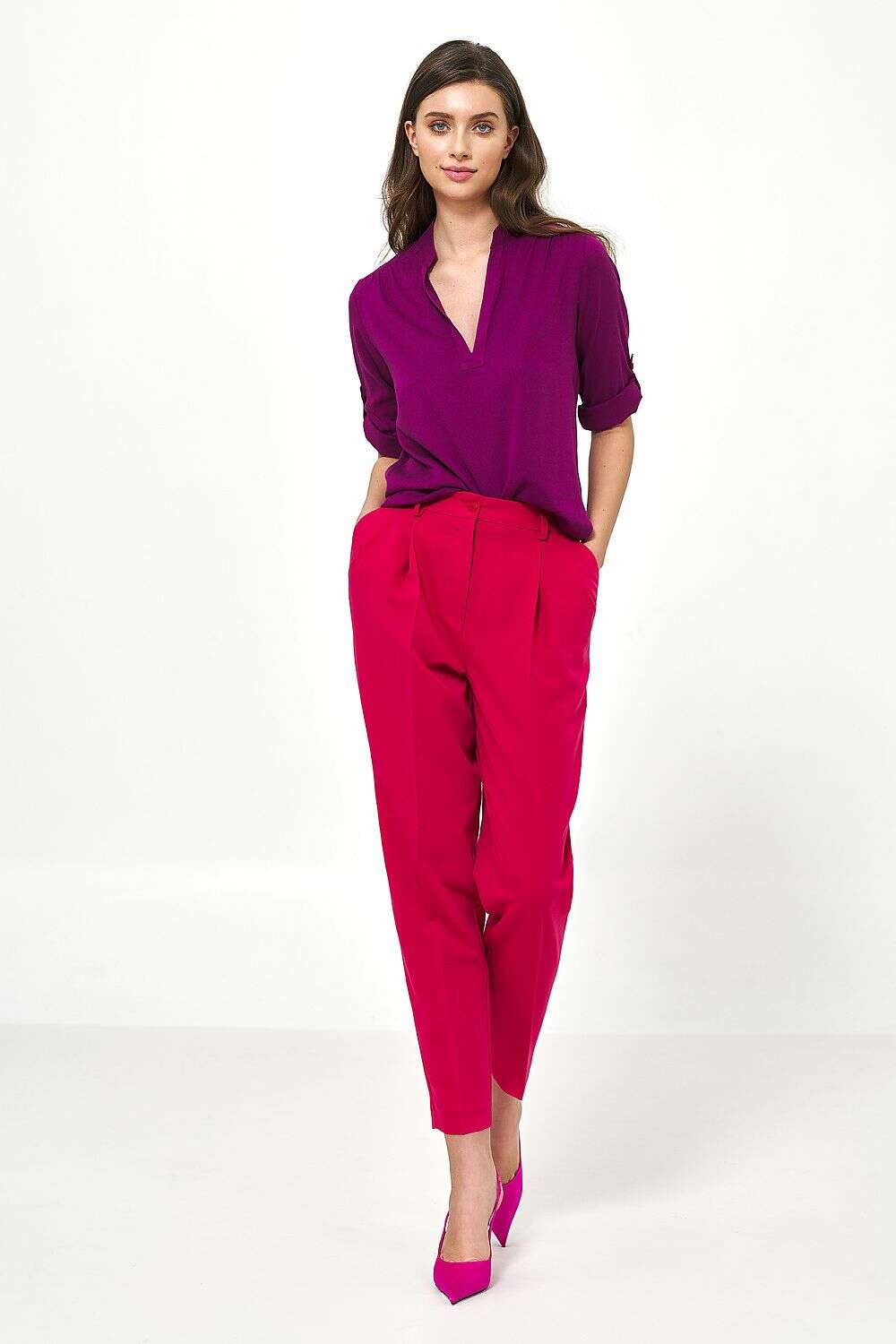 Blouse Model 216353 — Violet Viscose with Ruched Neck