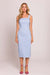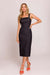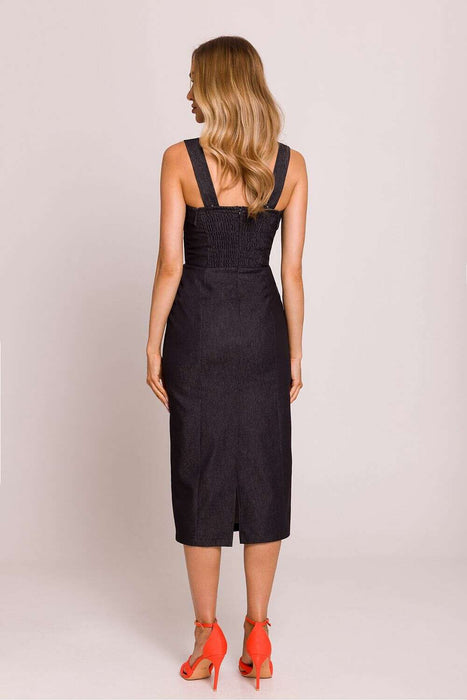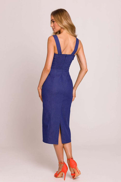 The pencil midi dress is an elegant and feminine proposal that perfectly accentuates the silhouette. Made of high-quality cotton fabric, it provides comfort and breathability throughout the day. The corset top with detachable snap-on straps allows for a perfect fit to the body, and the elastic band at the back additionally shapes and accentuates the waist. The covered zipper at the back ensures easy on and off, and the high slit at the back adds sex appeal and elegance to the dress. The dress does not have a lining, making it light and breathable. Designed and sewn in Poland, it stands out for its attention to detail and craftsmanship. Perfect for evening outings, receptions, or more formal occasions.