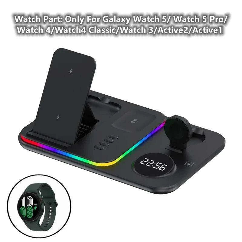 5-in-1 Fast Charging Wireless Dock with RGB LED for Apple Watch, AirPods, iPhone, Galaxy Watch, and Samsung Devices..