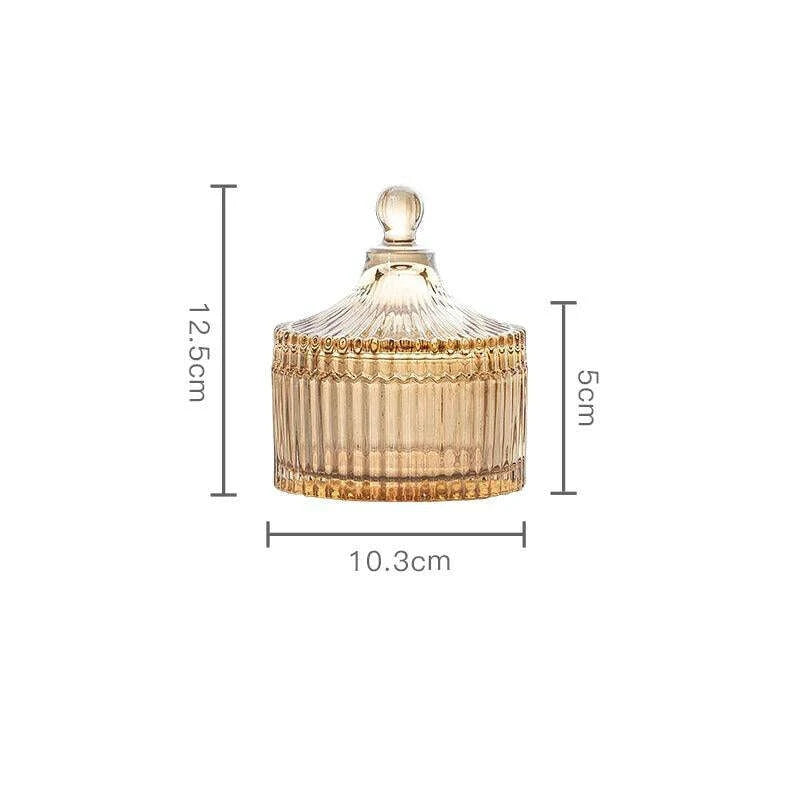 Amber Radiance Crystal Glass Storage Jar with Lid for Jewelry and Event Decor..