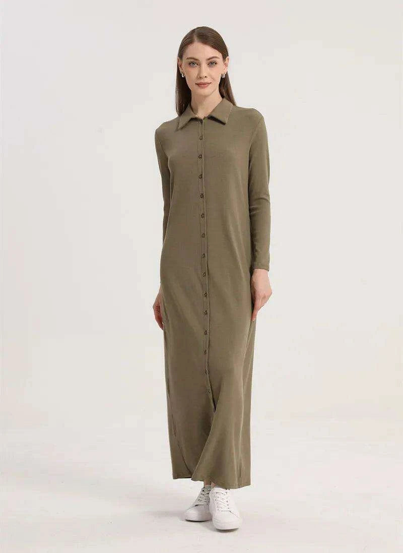 Ankle-Length Maxi Dress with Full Sleeves and Stylish Button Details for Women