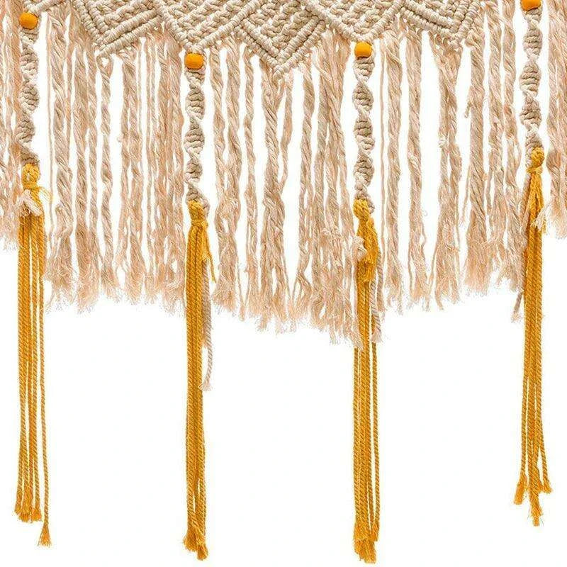 Transform your living space with our exquisite Handcrafted Bohemian Macrame Flag Wall Hanging. This unique decor piece is designed to elevate your ambiance while being kind to the environment.