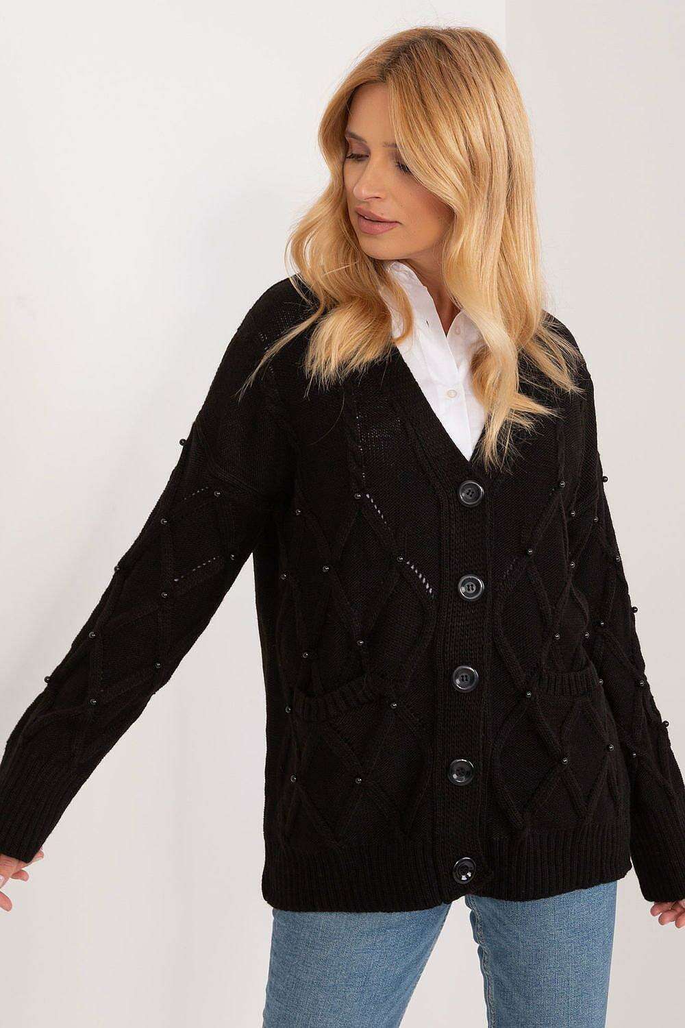 • Unique Design: This cardigan features beautifully adorned decorative sewn-on beads, creating a striking visual appeal that sets it apart from typical outerwear.