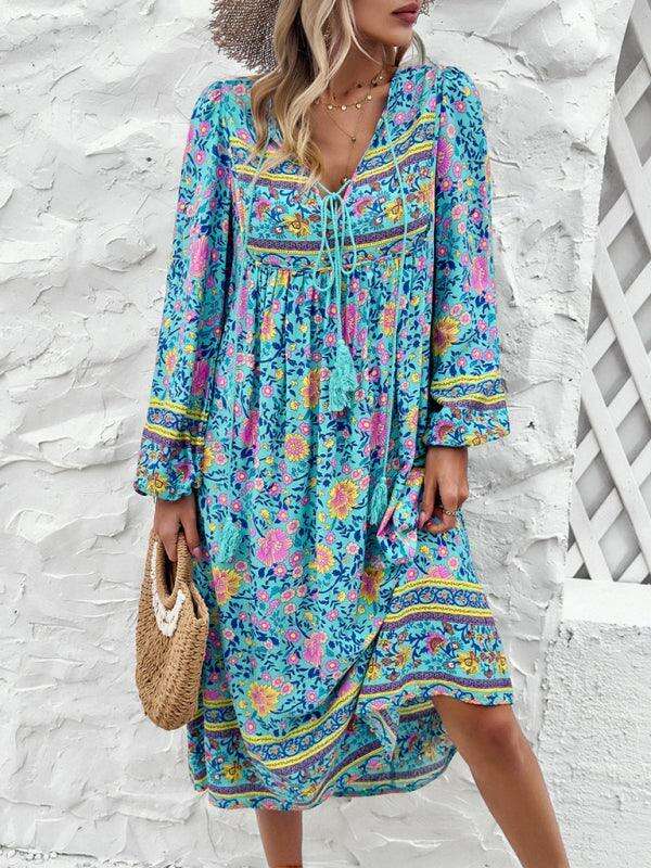 Bohemian Breeze Women's Long Sleeve Resort Dress in Viscose