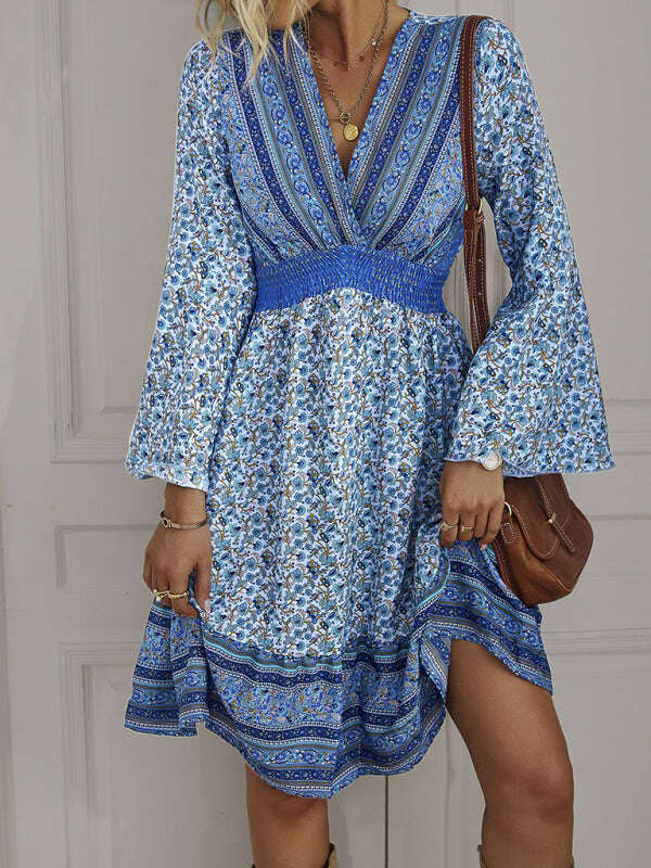 - Flattering Design: The V-neckline and long sleeves enhance the flowing silhouette, while detailed patterns infuse a touch of bohemian elegance.