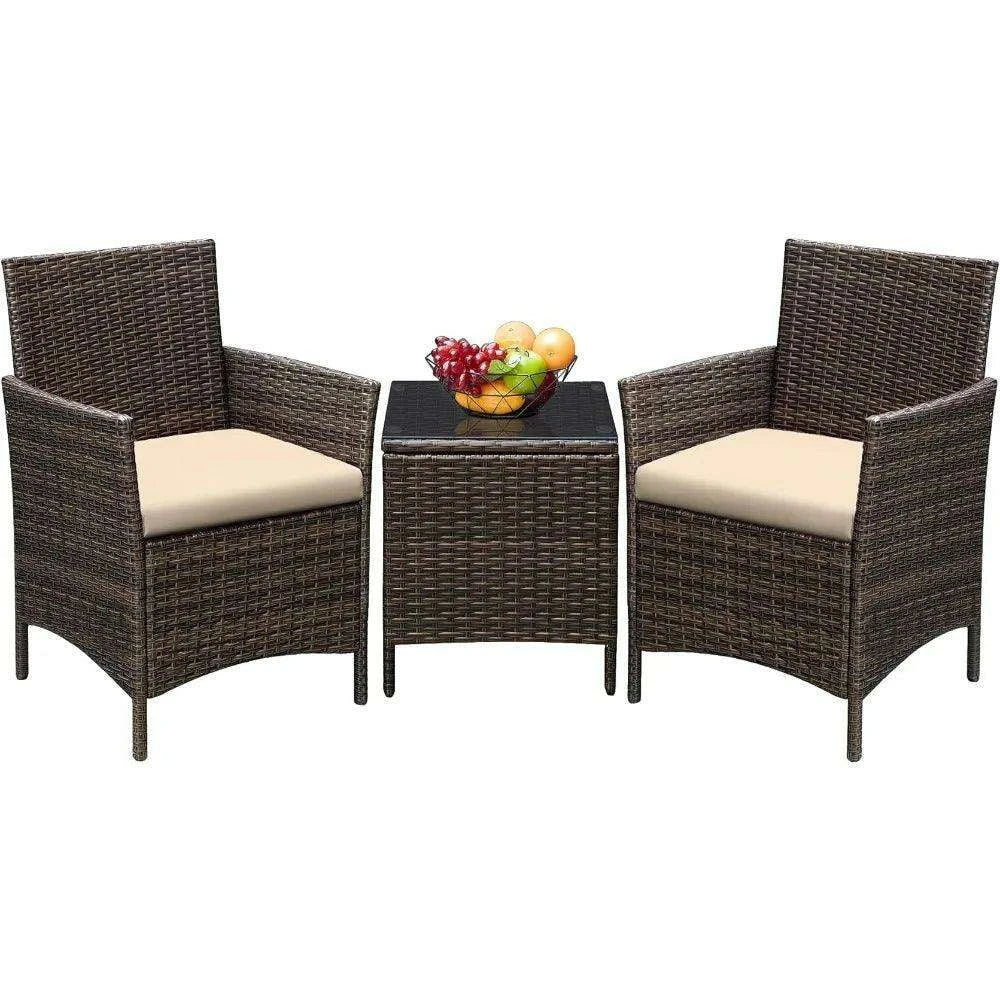 Brown and Beige Lightweight 3-Piece Rattan Outdoor Seating Set with Cushions