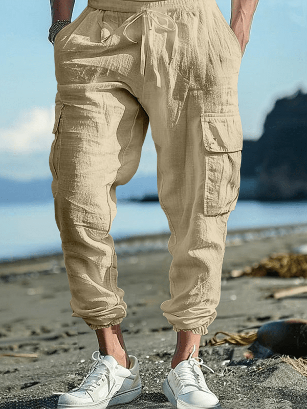 Casual cuffs, multi-pocket drawstrings, solid color, loose large size drawstring trousers