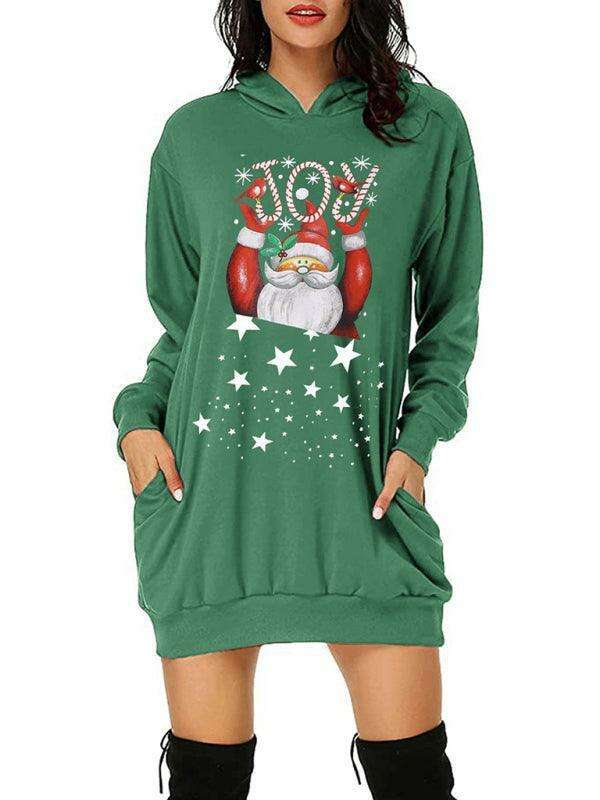 Charming Christmas Hooded Sweater Dress with Distinctive Print for Women