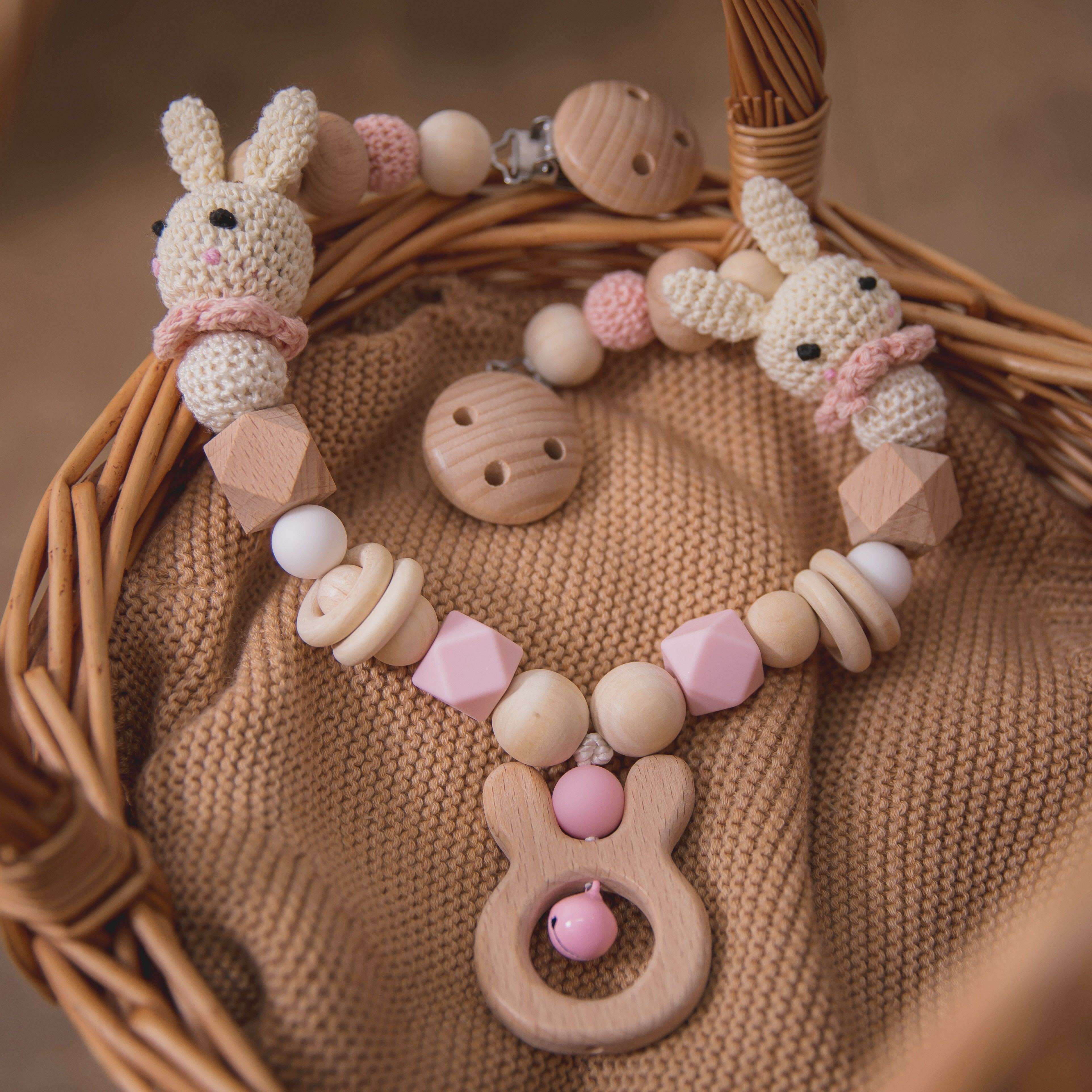 Charming Rabbit Teething Cart Chain - Safe and Fun Teething Accessory for Babies