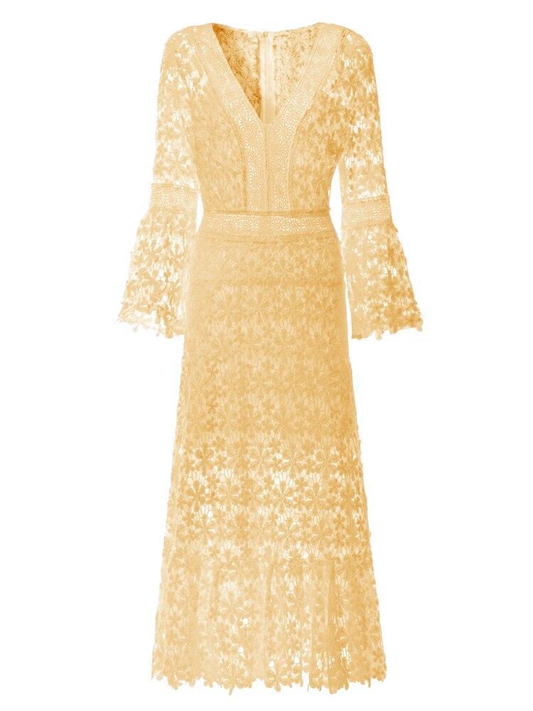 Whether you're attending a garden party, a romantic dinner date, or a casual brunch with friends, this dress is designed to turn heads and elevate your style. Indulge in elegance and make a statement with our Chic V-Neck Flare Sleeve White Pullover Dress.