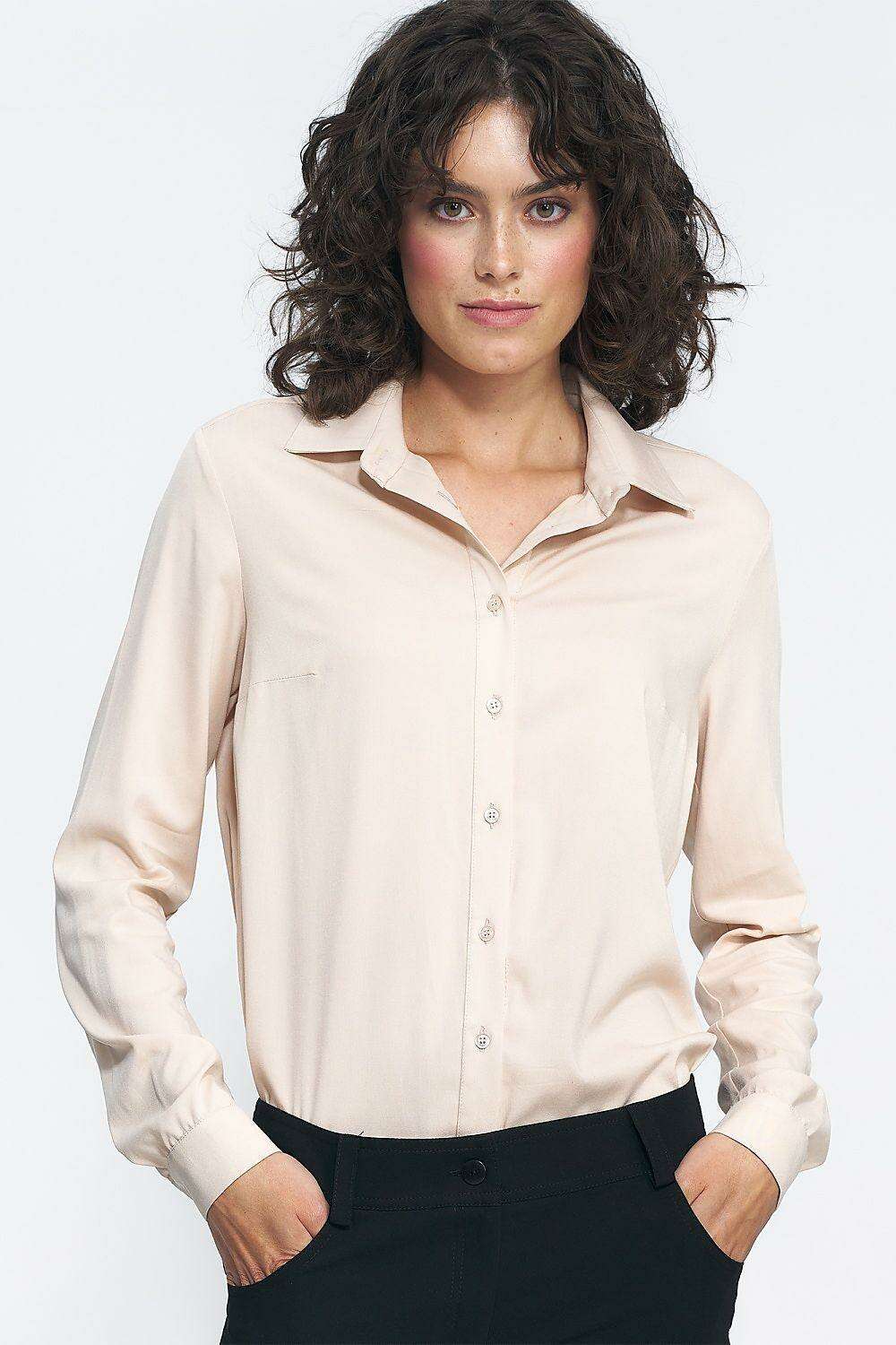 Chic Beige Viscose Long Sleeve Shirt for Everyday Elegance