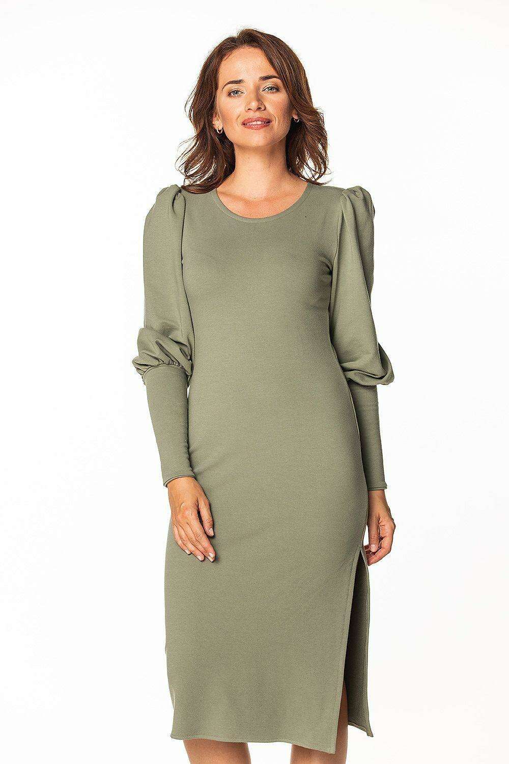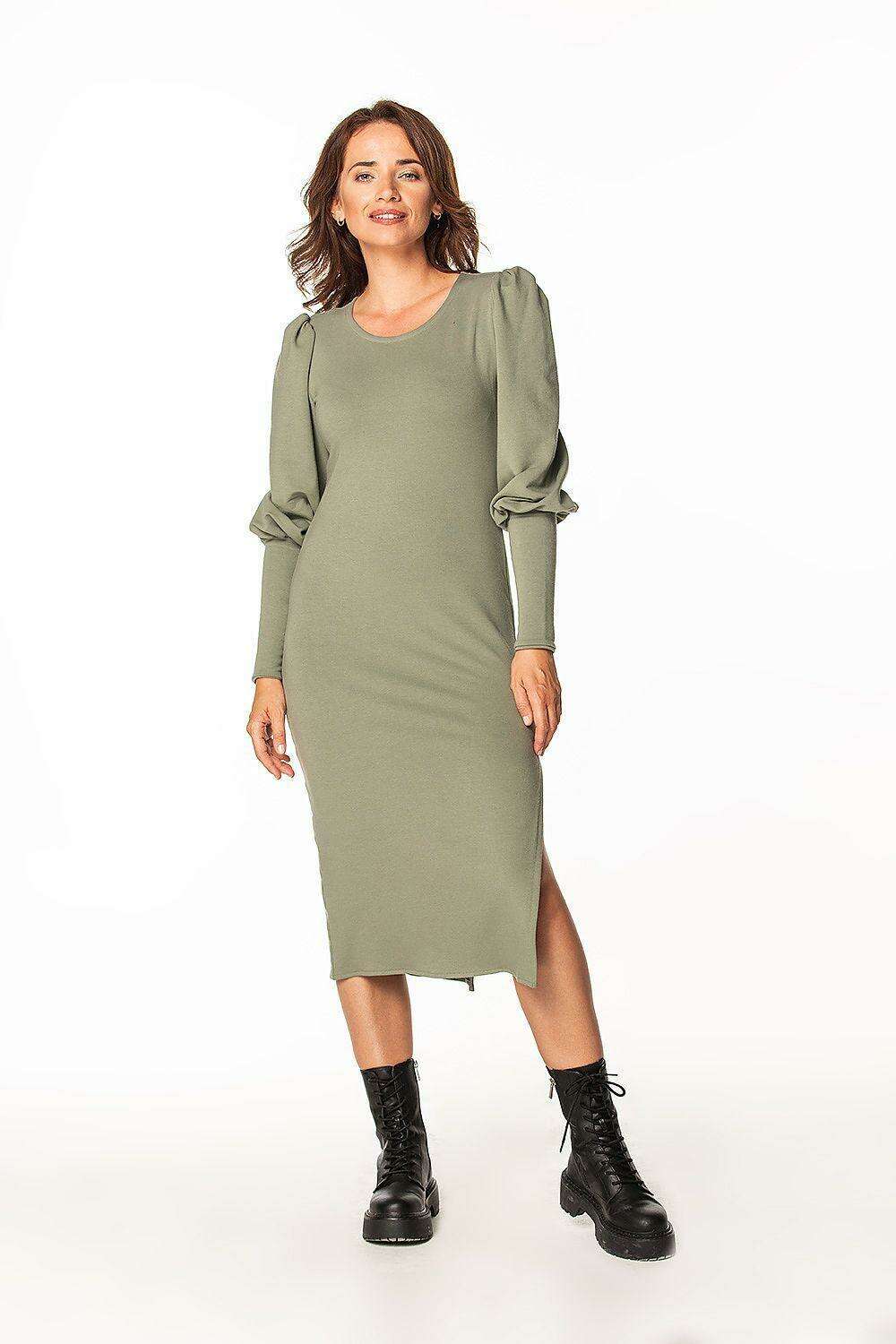 Chic Boat Neck Knit Midi Dress with Stylish Double Cuffs