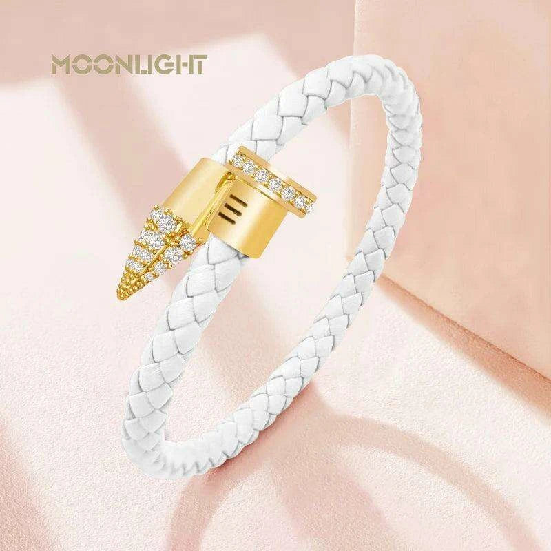 Customizable Elegant Leather Nail Bracelet with Sparkling Zirconia - Chic Women's Accessory