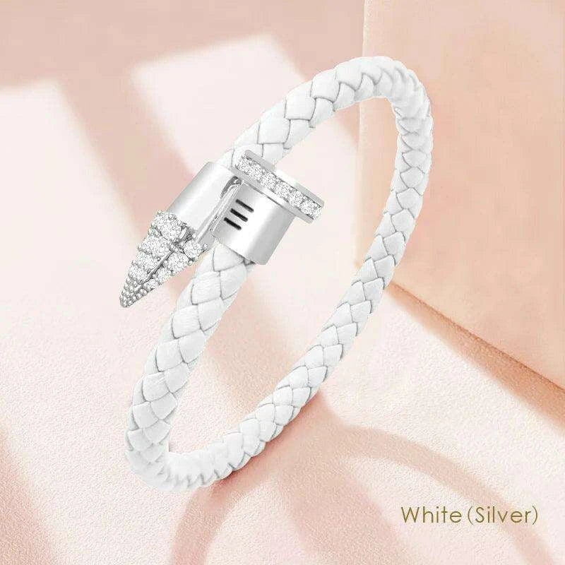 Chic Customizable Leather Nail Bracelet with Dazzling Zirconia - Stylish Women's Accessory
