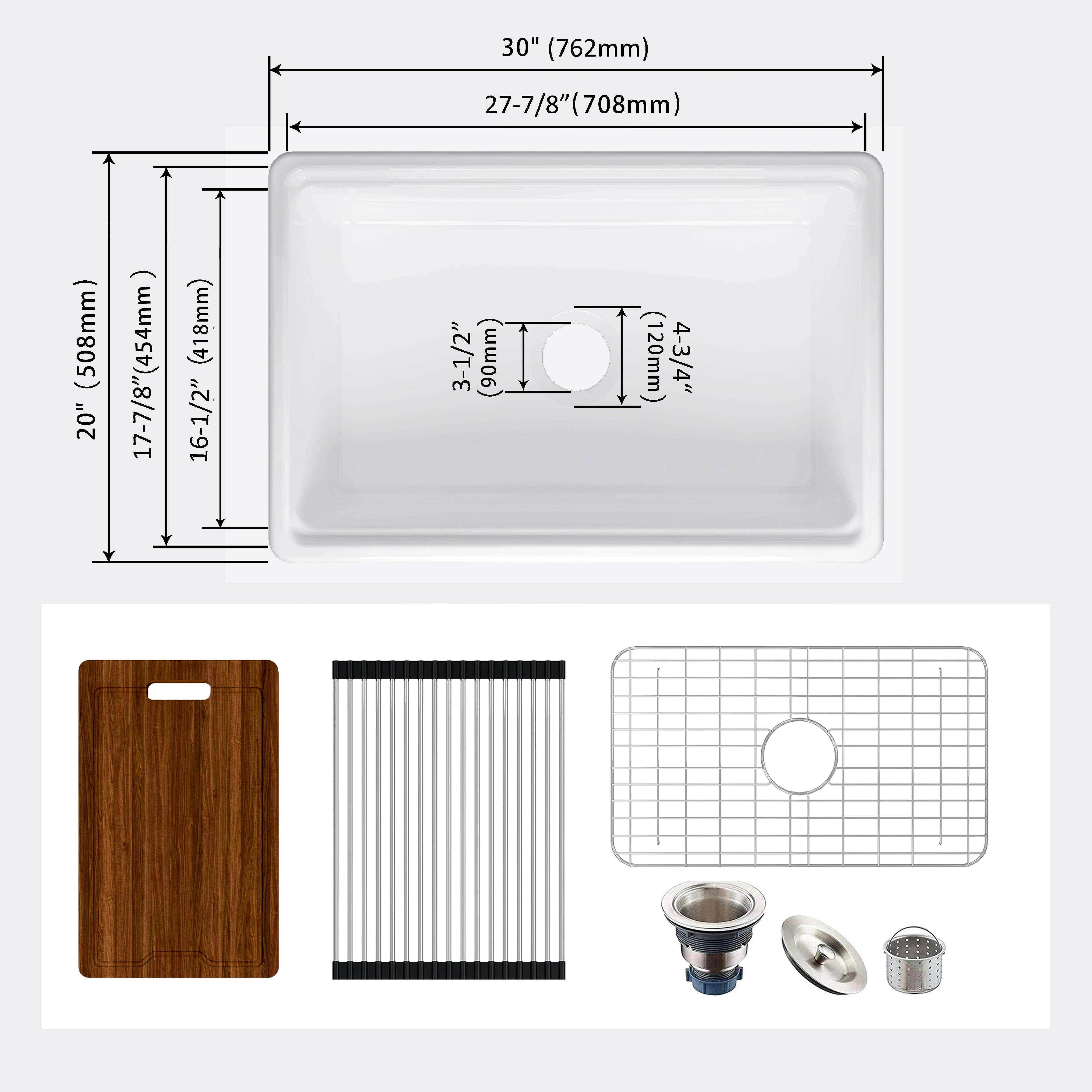 Chic Farmhouse Kitchen Sink Ensemble with Essential Accessories - Includes Cutting Board, Grid & Strainer