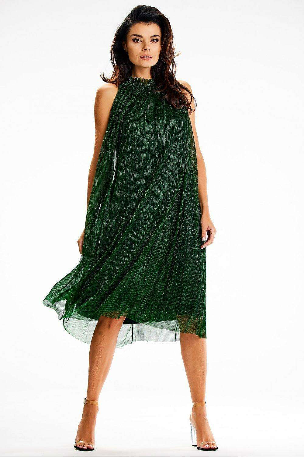 Elevate your evening wear with the Elegant Mesh Halterneck Midi Dress, designed for the sophisticated woman who appreciates style and comfort. This exquisite piece features a refined blend of shiny mesh fabric paired with luxurious satin lining, ensuring you not only look stunning but feel incredible too.