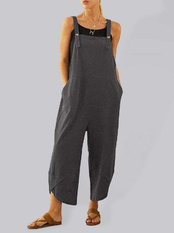 Chic High-Waisted Jumpsuit with Trendy Button Suspenders for Women