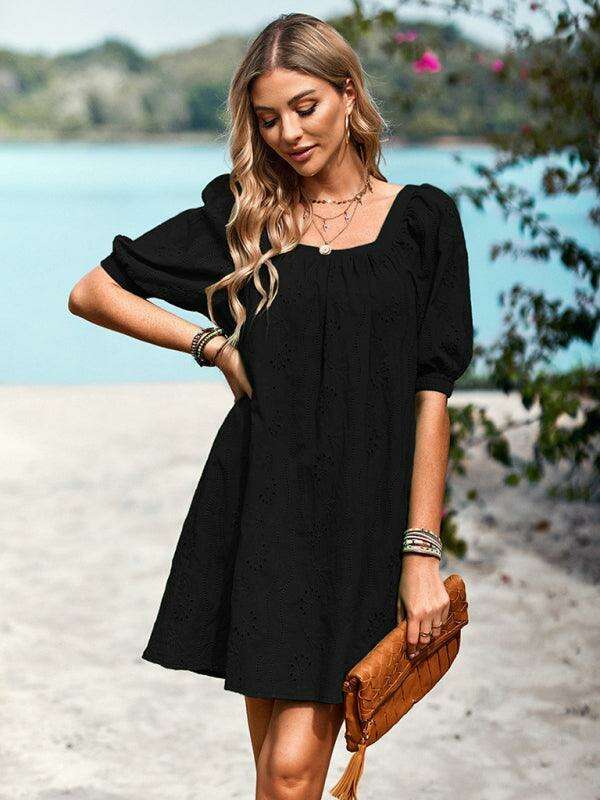 • Elegant Design: The stunning hollow jacquard skirt, paired with a unique square neckline, enriches your outfit with a sophisticated flair that's sure to turn heads.