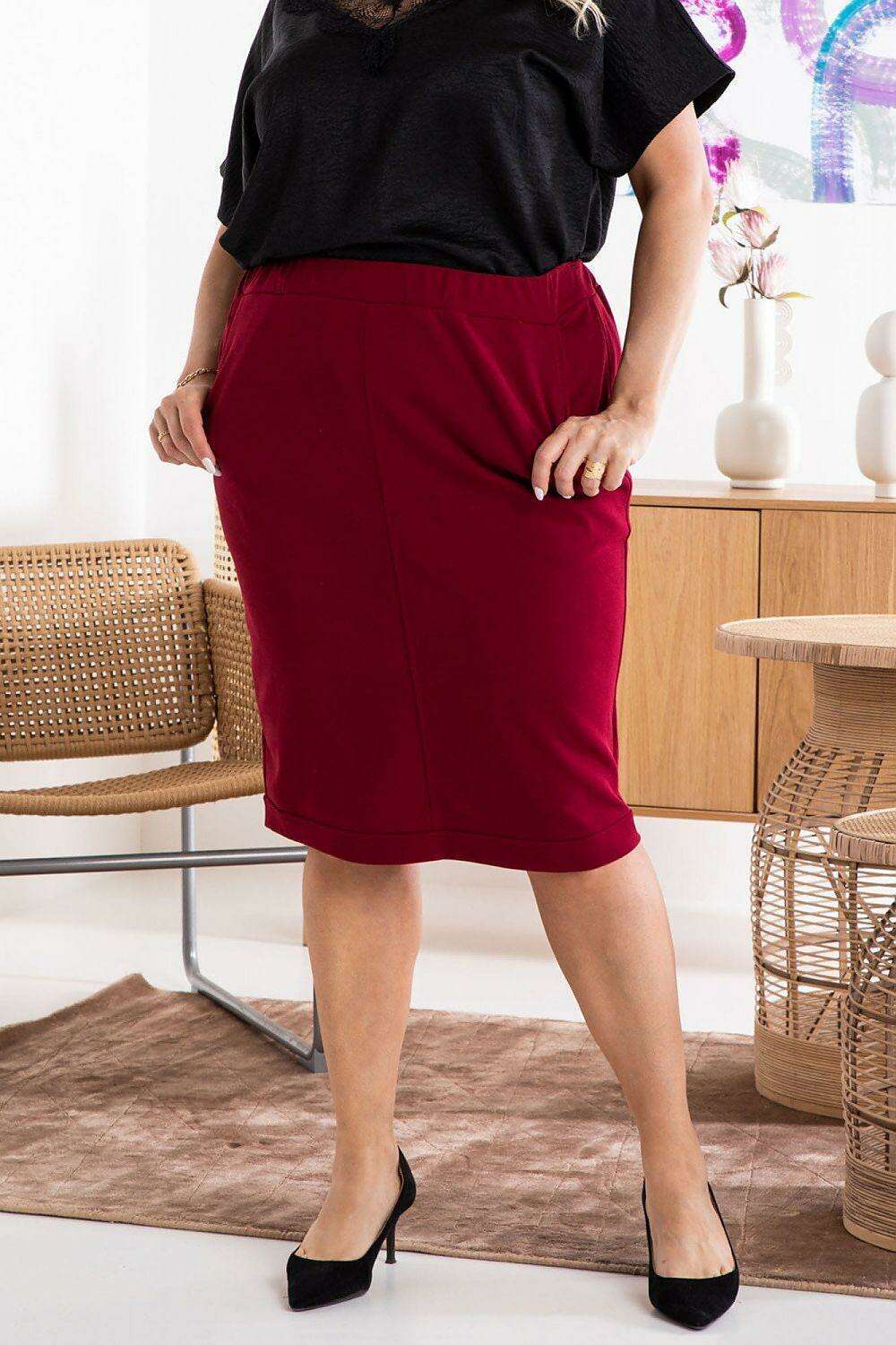 Stylish Knee-Length Knitted Pencil Skirt with Front Pockets - Eryka by Polish Creations