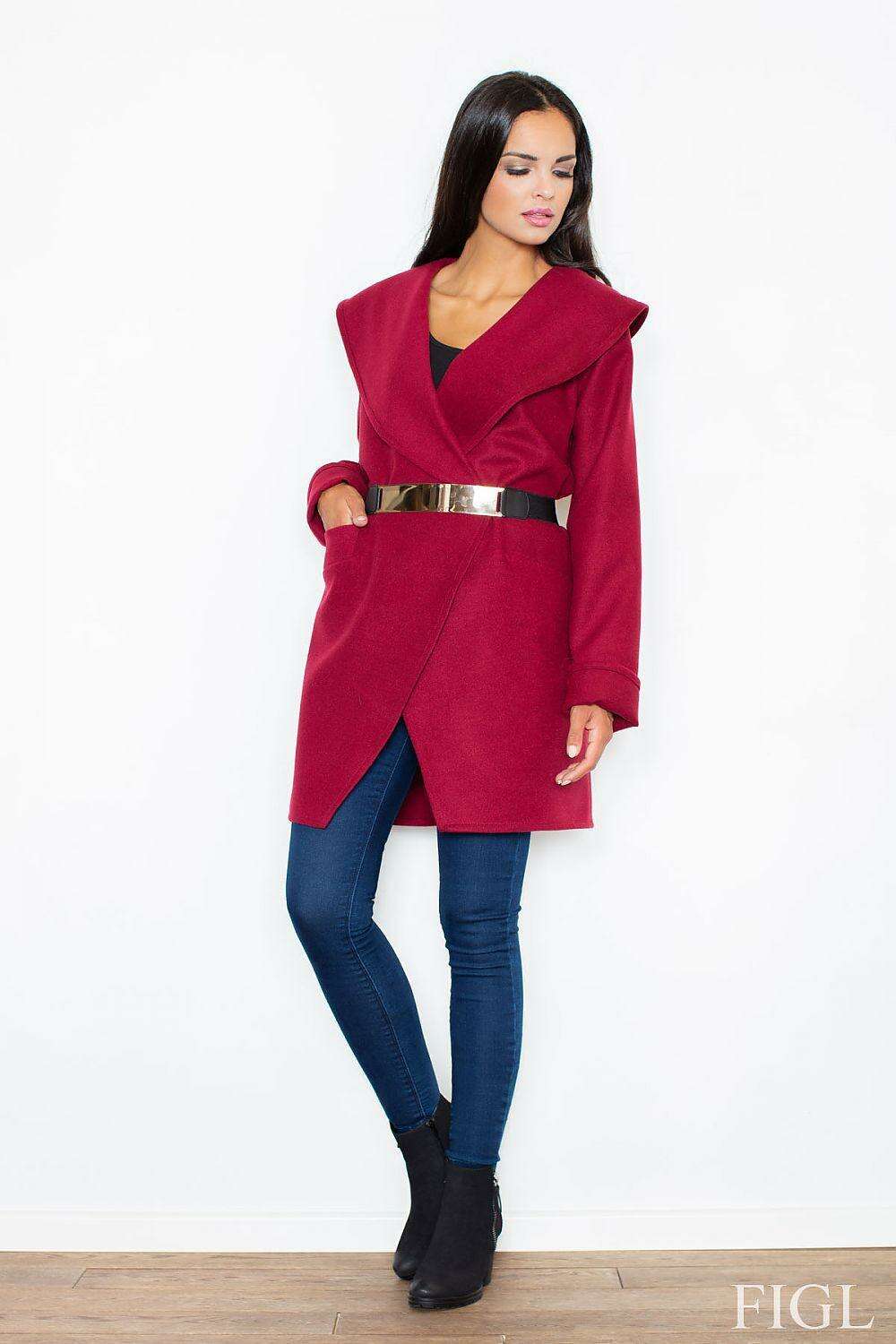 Elegant Knit Coat with Stylish Gold Buckle - Trendy Outerwear Essential