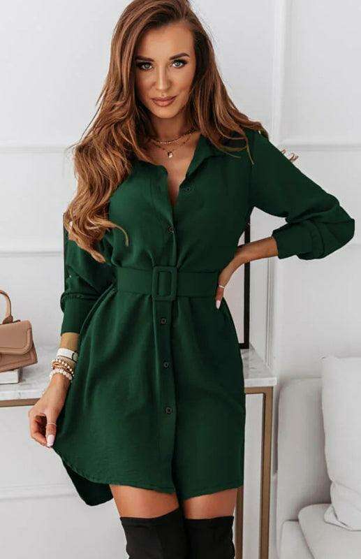 Sophisticated Polyester Shirt Dress with Lapel Collar and Long Sleeves