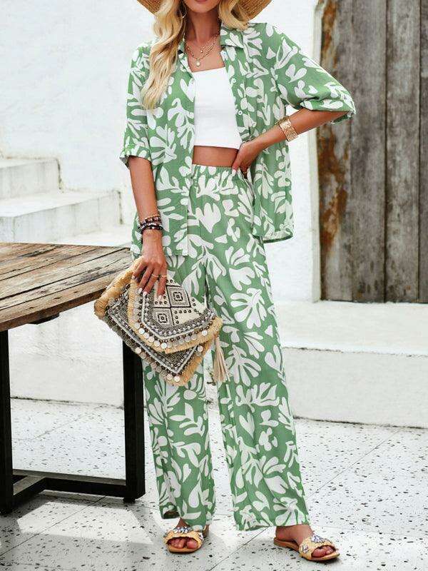 Vibrant Escape: Stylish Women's Shirt and Trousers Set for Effortless Elegance