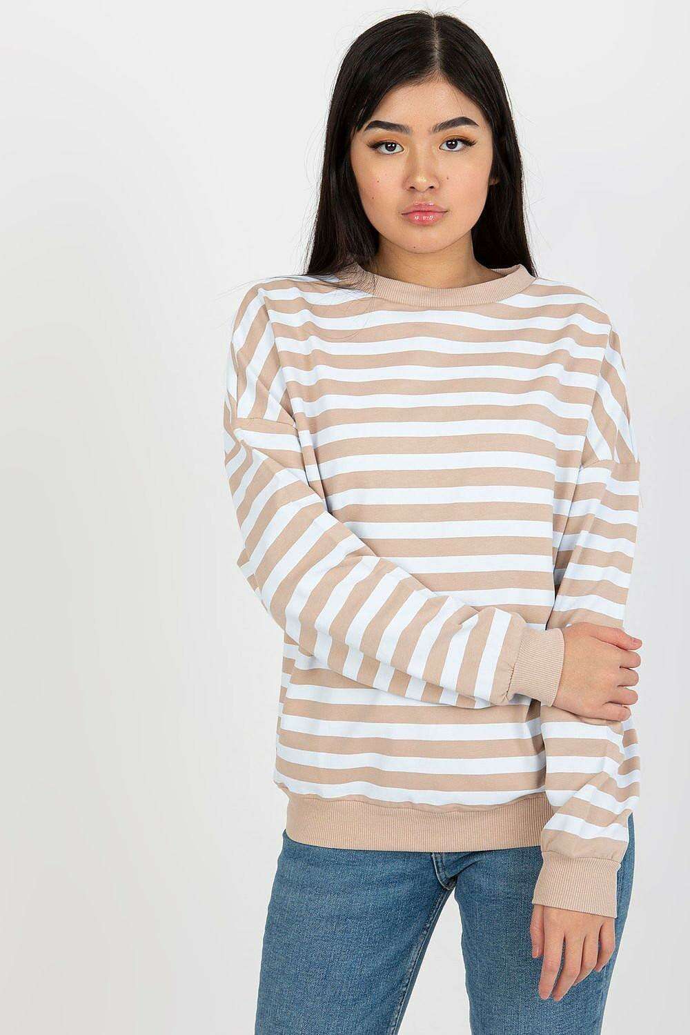 Striped Cotton Round Neck Sweatshirt for Women in Parisian Style