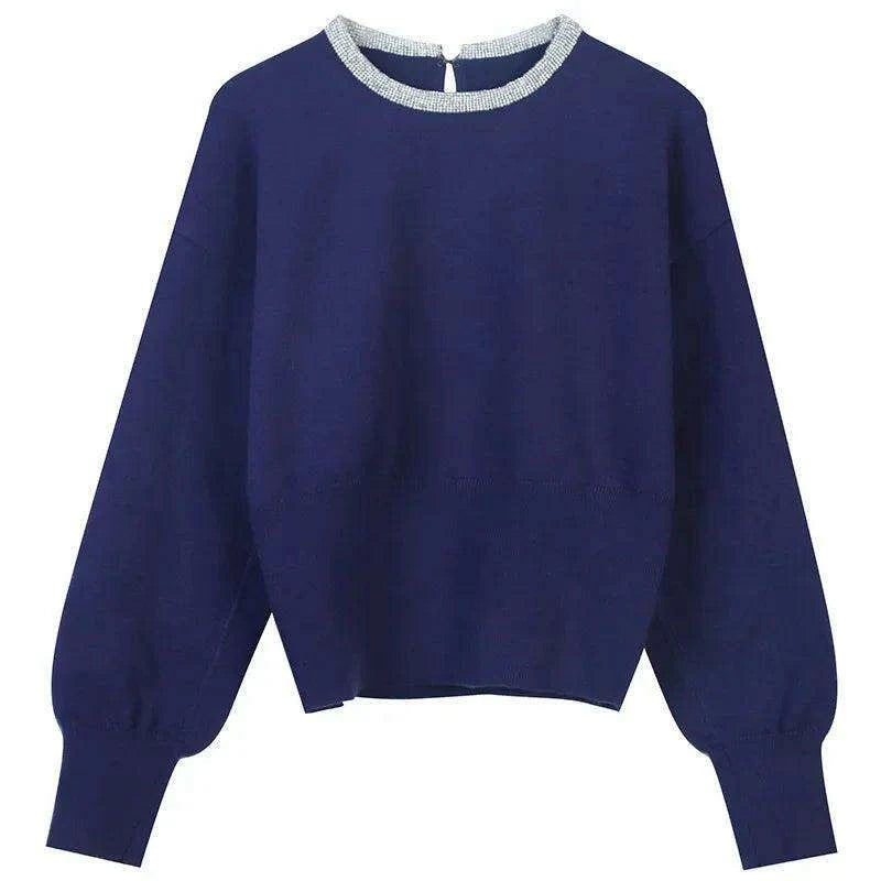 Chic Two-Tone Knit Pullover Sweater for Women - Cozy Round Neck Top for Cold Weather Style