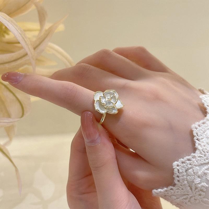 Discover the perfect blend of elegance and sophistication with our Elegant Korean White Camellia Flower Ring. Designed for the modern woman, this exquisite piece features a unique oil drip effect that brings the delicate camellia flower to life.