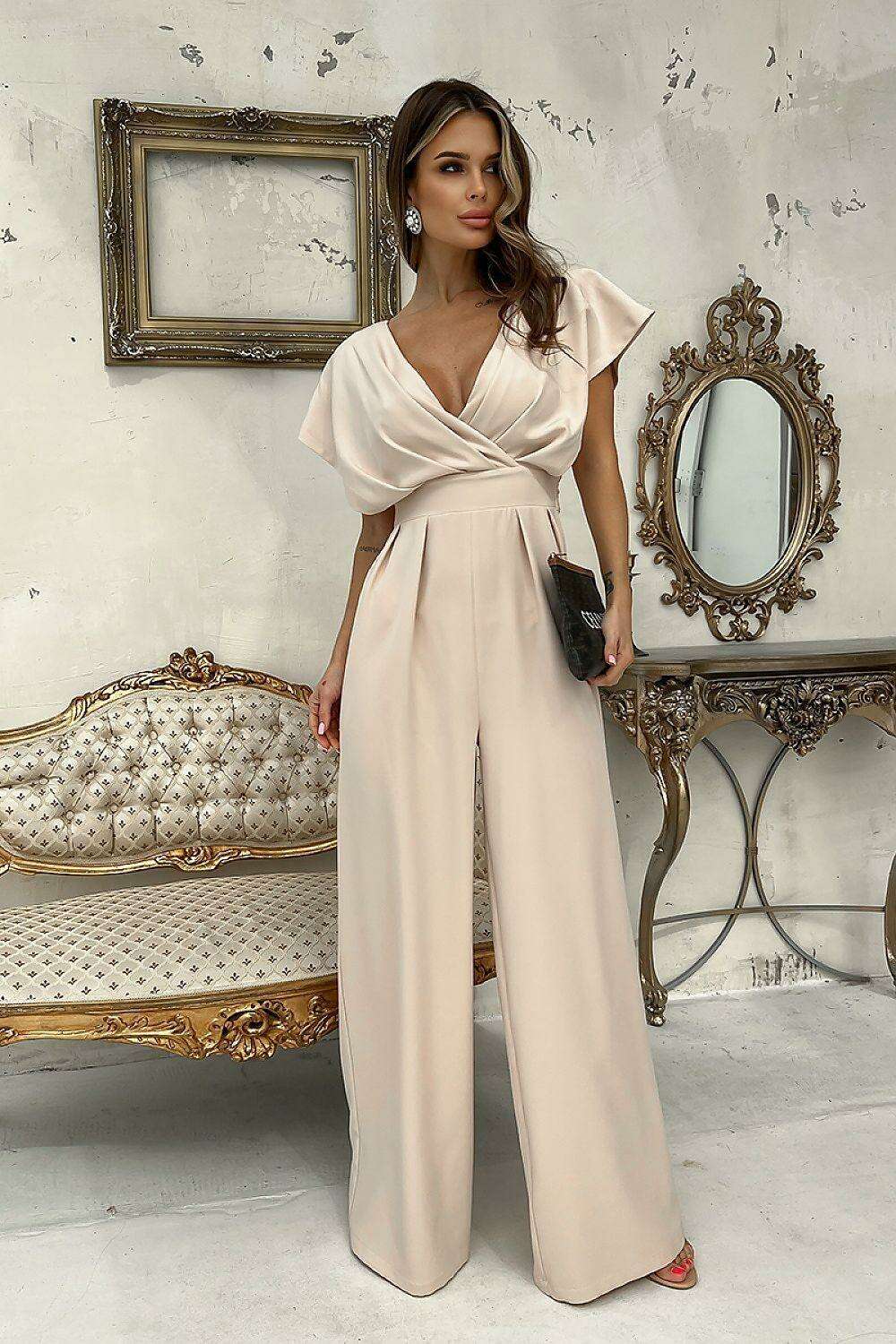 Step into sophistication with our Sophisticated Flared Sleeve Jumpsuit, designed to elevate your wardrobe effortlessly. This stylish jumpsuit combines modern aesthetics with timeless elegance, making it the perfect choice for various occasions.