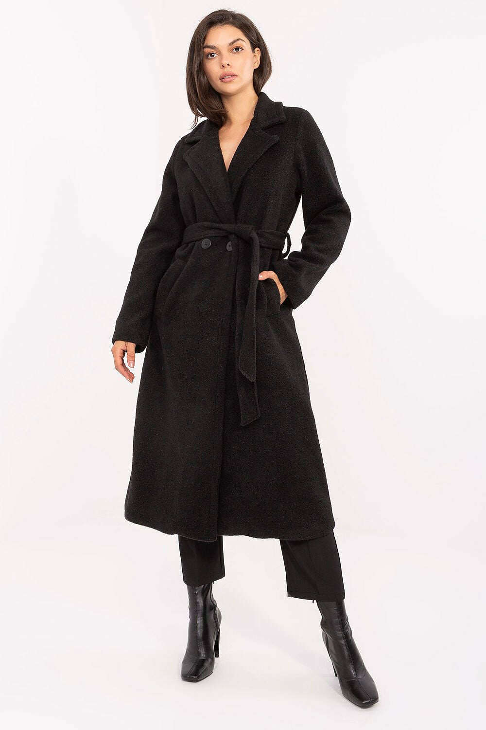 Stylish boucle women's coat is an ideal proposal for the autumn/winter season. It stands out with its characteristic, varied texture of the material and casual style, which will work well in both everyday stylizations and as a comfortable cover-up for work. The long form model with lapels looks elegant and modern. It has a double-breasted button fastening and a tie belt, which allows you to emphasize the waist and give the silhouette feminine proportions. Functional slip pockets and lining provide comfort when wearing. Light, without additional insulation, it will be an excellent choice for colder days as a transitional coat with a universal character.
