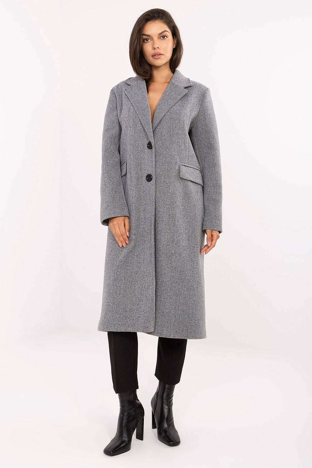 An elegant women's coat with a long cut is a timeless model that will work great both for everyday wear and for styling at work or for special occasions. Made of polyester, with a smooth material structure, it presents itself in a minimalist and classy way, emphasizing its classic character. The coat has shoulder pads sewn in, which give the silhouette a clearly defined line and an elegant touch. Notched lapels and a single-breasted button closure emphasize its timeless style. The model is equipped with a lining and practical pockets tucked under the flaps, completing the whole look. This lightweight, transitional coat is perfect for the autumn, winter, and spring seasons, an ideal choice for women who appreciate classic style in a modern interpretation.