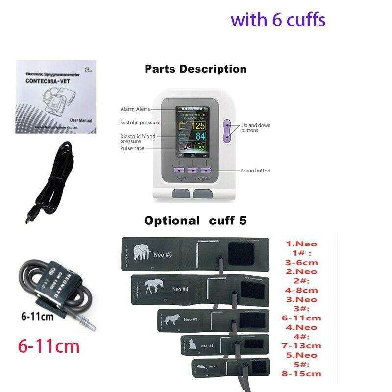 Comprehensive Veterinary Blood Pressure and Oxygen Monitoring System with Adjustable Cuff Sizes