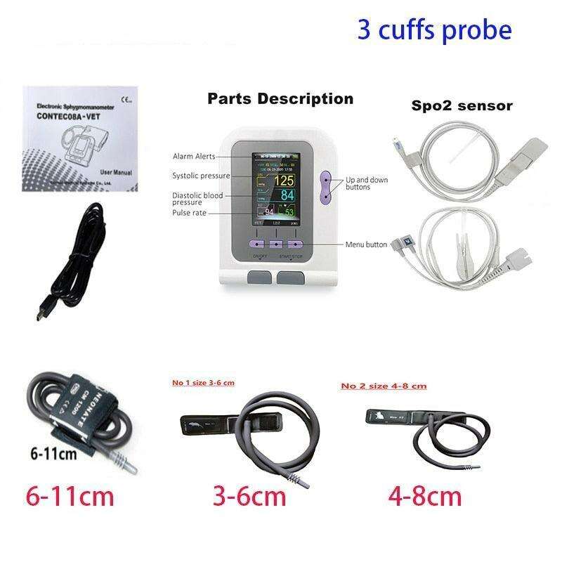 Comprehensive Veterinary Blood Pressure and Oxygen Monitoring System with Adjustable Cuff Sizes