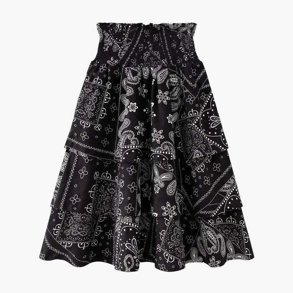 Cotton Paisley Print Top and Knee-Length Skirt Ensemble
