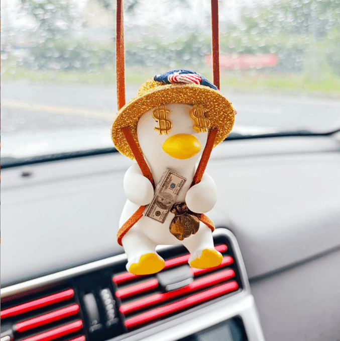 Transform your vehicle into a statement of individuality with the Handgun Cowboy Duck Car Mirror Charm! This charming swing pendant adds a playful touch of originality to your car, ensuring it stands out on every journey.