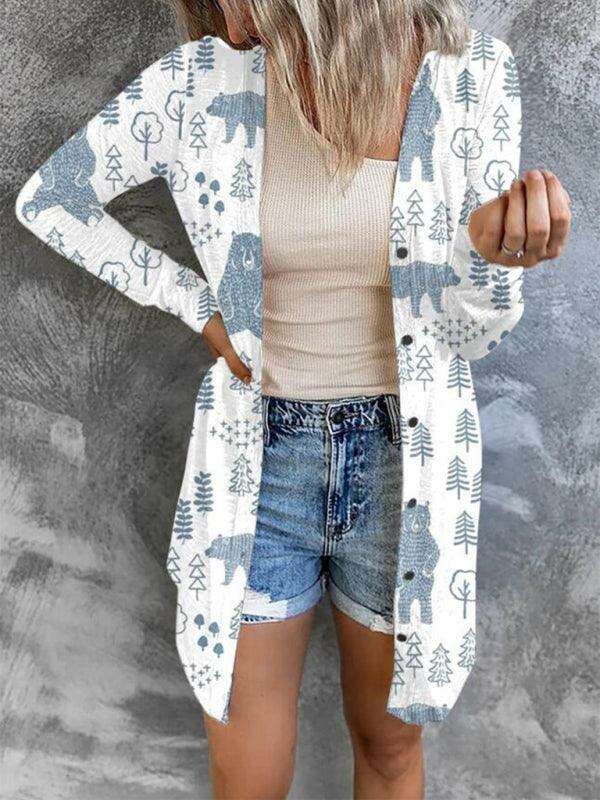 Cozy Christmas-Themed Women's Knit Cardigan - Holiday Sweater for Festive Occasions