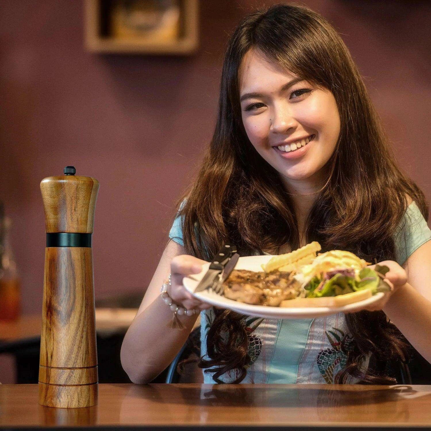 - Durable Construction: Crafted from 100% solid natural Acacia wood, this pepper mill is built for longevity without compromising elegance.
