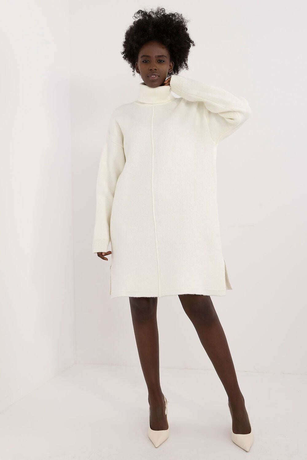 Mini dress with a turtleneck and smooth texture, perfect for everyday wear. Made of soft acrylic with additions, it provides comfort and a pleasant fit to the body. Long sleeves and a casual style make it a great choice for everyday outings. The simple yet elegant design makes the dress fit perfectly into a loose, urban style, perfectly complementing various accessories.