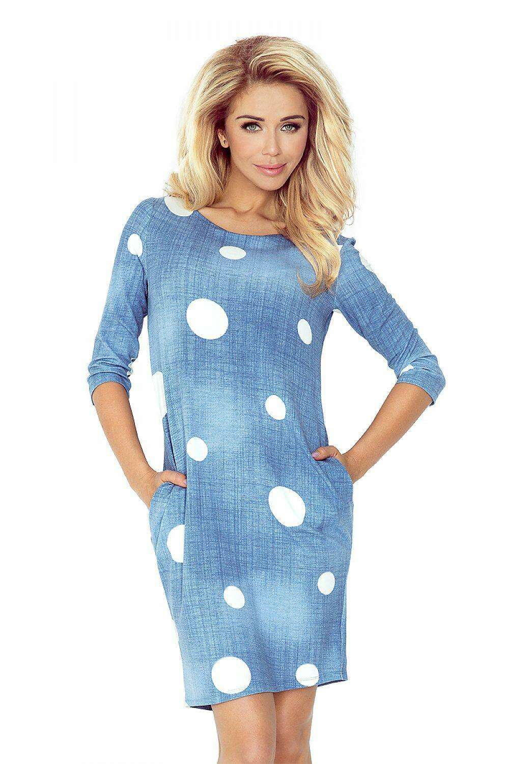 Choose Numoco's Circle Print Denim Dress and experience a blend of fashion and practicality that sets you apart from the rest!