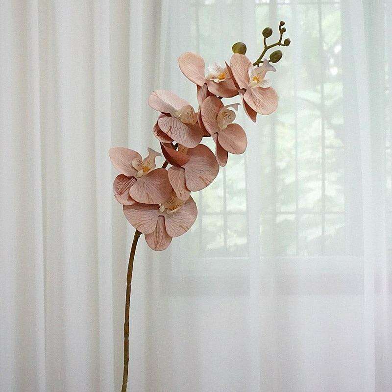 Transform your space into a sanctuary of elegance with our enchanting 7-Head Silk Orchid Stem. This stunning floral arrangement is designed to elevate your home decor effortlessly and bring a touch of sophistication to any setting.