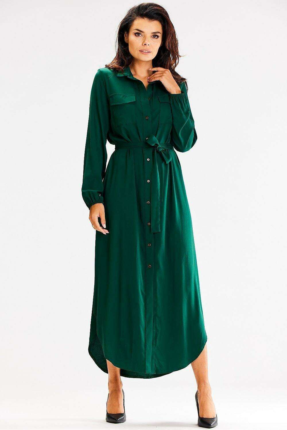 - Functional Design: This dress features long sleeves, a buttoned front, and spacious pockets, combining practicality with chic style.