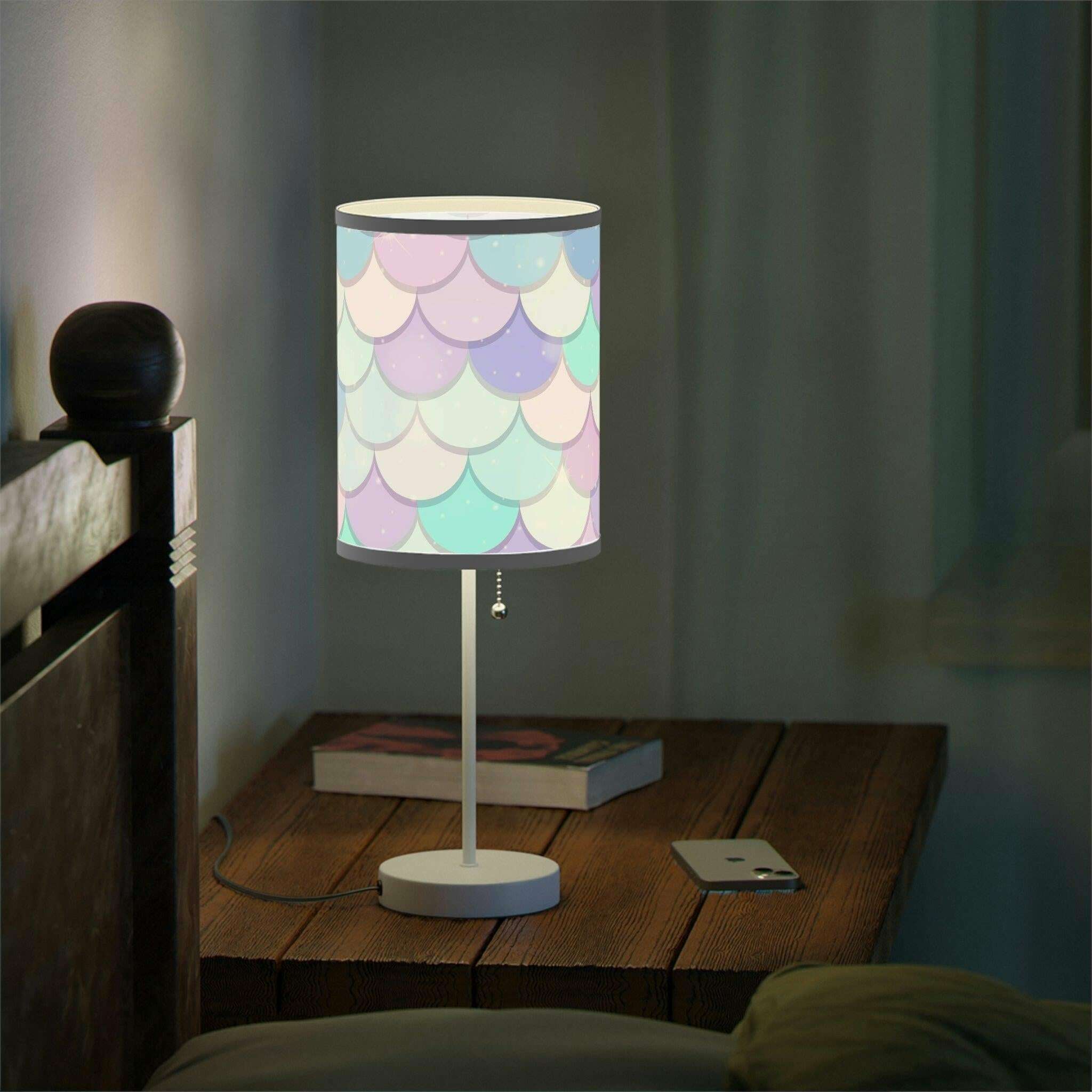 Elegant Customizable Mermaid Steel Base Table Lamp with Unique Printed Shade..